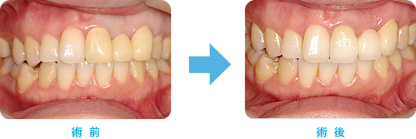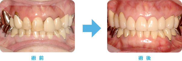 - 術後です。ブリッジにしたことで、歯並びも改善され、審美的です。